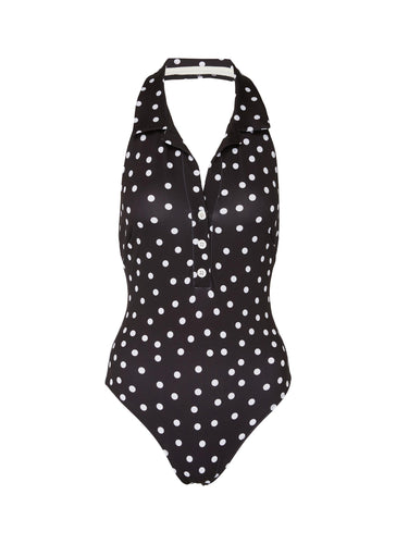 'The Janet' polka dot print halterneck one-piece swimsuit