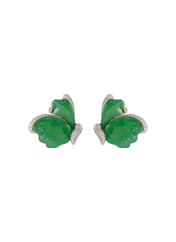 Diamond jade 18k white gold butterfly earrings - Samuel Kung - Metallic