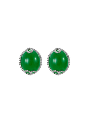 Diamond jadeite 18k white gold stud earrings - Samuel Kung - Green
