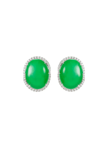 Diamond jadeite oval stud earrings - Samuel Kung - Green