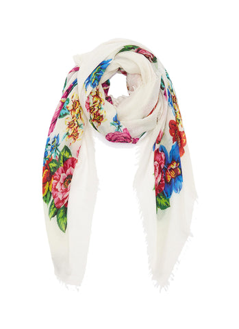 Floral print border cashmere scarf - Franco Ferrari - Multi-colour