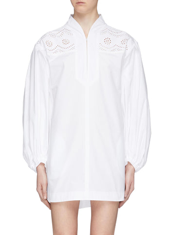 Puff sleeve perforated floral yoke shirt dress - Philosophy di Lorenzo Serafini - White