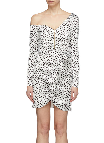 Zip front ruffle graphic print satin one-shoulder dress - self-portrait - Multi-colour