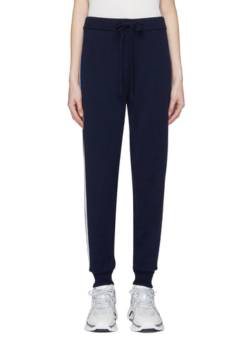 Stripe outseam Merino wool blend knit track pants - être cécile - Blue
