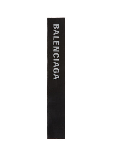 Logo jacquard wool scarf - Balenciaga - Black