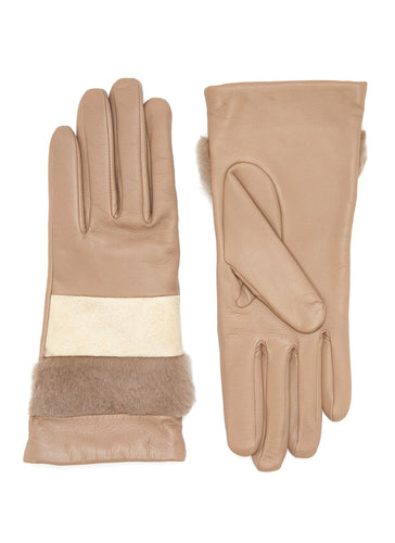 Fur panel leather gloves