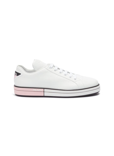 Logo appliqué colourblock outsole leather sneaker - Prada - White