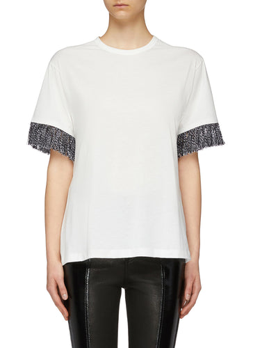 Fringe cuff drape logo appliqué T-shirt - Sonia Rykiel - White