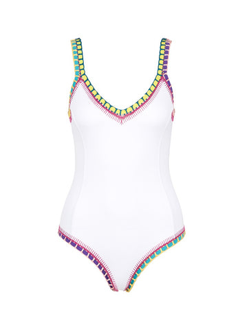 'Yaz' crochet trim scoop back one-piece swimsuit - KIINI - White